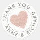 Un coeur rose brillant sur un autocollant en cercle blanc, avec vos propres noms, et les mots Merci
