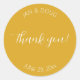 Décorez votre emballage de faveur de mariage avec ces autocollants ronds qui ont une couleur jaune doré avec un script blanc et stylisé. Personnalisez vos autocollants en remplaçant les noms des mariés et des mariés et la date du mariage par les vôtres. Sélectionnez votre taille d'autocollant.