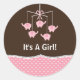 Sticker Rond Merci mobile rose bleu et Brown éléphant
