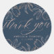 Sticker Rond Merci moderne bleu foncé et Mariage or Rose