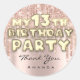 Sticker Rond Merci Nom 14e anniversaire Parties scintillant Ros