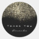 Sticker Rond Merci Nom Parties scintillant or Confetti Noir Bla