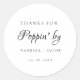 Envoyez vos invités avec une faveur aussi amusante que délicieuse ! Ce charmant autocollant mariage "Thanks for Poppin’ By" est la façon idéale de préparer du pop-corn, du maïs-bouilloire ou votre collation salée préférée