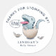 Sticker Rond Merci pour Stomping By Dinosaur Baby shower Blue