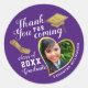 Créez des autocollants de fin d'études personnalisés violet, blanc et faux or de 2025 avec une photo en forme de coeur, du Merci pour l'annonce à venir, et des illustrations de casquette et de diplôme de l'étudiant. S'il vous plaît, personnalisez avec le nom et le nom de famille de la jeune fille, téléchargez une photo personnalisée, et tapez une année avant de commander.