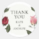 Rose moderne merci classique collant rond avec deux beaux roses assis sur un panneau arrière teinté tenant vos détails dans un texte élégant. Parfait pour les mariages, douches nuptiales, baby showers, baptêmes, fêtes de fiançailles, fêtes d'anniversaire, remise des diplômes, rencontres d'anniversaire et autres événements spéciaux tout au long de l'année! Conçu par Thisisnotme©