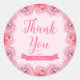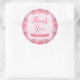 De beaux autocollants ronds roses d'aquarelle rose avec les mots "Merci". C'est une belle façon de sceller vos enveloppes ou sacs de faveur. Modifiez le texte pour ajouter votre nom et pour customiser la police cliquez sur "Customisez-le". *Veuillez noter que le filigrane Zazzle qui apparaît dans l'aperçu du zoom n'apparaîtra pas sur le produit imprimé final © Rosewood et Citrus