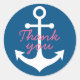 Sticker Rond merci rose sur ancre blanche sur bleu