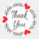 Sticker Rond Merci Rouge Coeur Noir Laurel Feuille couronne