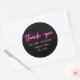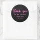 Sticker Rond Merci Simple moderne noir rose néon Script