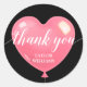 Merci et votre nom sur un ballon de coeur rose sur un arrière - plan noir, ces autocollants sont prêts à personnaliser pour toute occasion, faveurs, autocollants d'enveloppe et plus encore. Vous pouvez modifier la taille de police et de police pour le nom, il suffit de cliquer sur le lien Personnaliser plus loin.