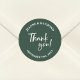 Sticker Rond Merci Vert Sage moderne Script Mariage Faveur