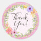 Sticker Rond Merci Whimsical Floral Rose Rustique Rose Bois