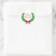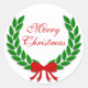Sticker Rond Merry Christmas Laurel Feuille couronne et Red Bow