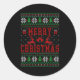 Sticker Rond Merry Christmas Reindeer Snowflake Ugly Christmas