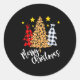 Sticker Rond Merry Christmas Tree Buffalo Plaid Red Green Xmas