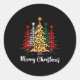 Sticker Rond Merry Christmas Trees With Buffalo Plaid & Leo