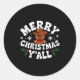 Sticker Rond Merry Christmas Yall Gingerbread Cowboy Howdy West