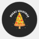 Sticker Rond Merry Crustmas Funny Zza Slice Christmas Tree Zza