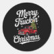 Sticker Rond Merry Truckin' Christmas Buffalo Plaid Clic Ck Up