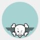 Clignotement, crâne et os croisés avec langue à baguer sur une aile en ligne de forme d'aile de style rétro de l'emblème automobile. T-shirts, sueurs, cartes, tasses, sacs, cadeaux.