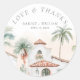 Sticker Rond Mexique Aquarelle Palm Tree Destination Mariage