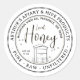 Le design central présente une illustration d'une petite ruche de jardin. Personnalisez avec votre nom, adresse et description du miel (brut, embouteillé à la main, source unique, etc.). Incluez également votre poids net miel. Conversions de poids net miel : 8oz (227g), 12oz (340g), 16oz (454g), 32oz (907g), 5lb (2,27kg).