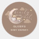 Nous pouvons attendre Genre Neutre Garçon & Fille Baby shower Fête Fournitures Joli bébé endormi sur le thème de la lune, design avec beige, crème brune, coloris tan. baby shower avec aquarelle illustration d'un petit avec lune de boho, nuage, étoile. Le texte dit "on peut attendre !" Cet autocollant de baby shower est idéal pour une douche sans sexe en hiver, au printemps, à l'automne et en été.