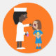 Sticker Rond Mignonne infirmière en caricature donnant des stic