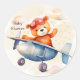 Sticker Rond Mignonne Ours Teddy Avec Son Avion Fête Anniversai
