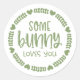 Ce mignon autocollant présente l'image texte "Certains Bunny vous aime" en vert et entouré de feuilles et de coeurs. Fait un sceau parfait pour les cartes de fin de année et les invitations.