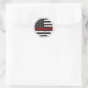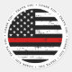 Stickers Merci mince de la ligne rouge - Etats-Unis Drapeau américain dans les couleurs du drapeau de pompier, dessin en détresse sur blanc. Cet autocollant de remerciement du pompier est parfait pour ajouter la touche finale aux cadeaux et aux faveurs lors de votre graduation de pompier ou des célébrations de la retraite du pompier, pour montrer aux pompiers l'appréciation pour le service dévoué, et les services d'incendie. DROIT D'AUTEUR © 2020 Judy Burrows, Black Dog Art - Tous droits réservés. Sticker rond fin pompier de ligne rouge Merci classique