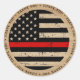 Sticker Rond Mince Red Line Rustic Drapeau Pompier Merci