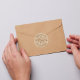 Autocollant rond simple et minimaliste avec une texture papier arrière - plan et des polices manuscrites. Parfait pour vos cadeaux, forfaits, étiquettes de produits, et bien plus encore.