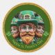 Leprechaun miniature en 3D + "Bonne Saint Patrick" en cercle vert. Conception sur autocollant rond.