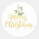 Sticker Rond Mistletoe Elegant Gold Script Joyeux Noël
