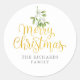 Sticker Rond Mistletoe Gold Script Joyeux Noël Nom de famille