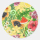 Sticker Rond Mix-fruit tropical, fleurs et feuilles sur jaune