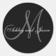 Mariage Favor Sticker Monogramme Noms Modèle. Élégants autocollants de mariage avec monogramme et nom de mariée et de mariée que vous pouvez customiser avec vos informations personnelles et le modèle de couleur mariage. Un grand autocollant pour les autocollants de faveur de mariage, étiquettes de boîte à gâteau, mariage de sceaux de sac à gâteau, et les scellés d'enveloppe de faire-part de mariage. Conception par Elke Clarke ©2008-11.