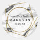 Marbre moderne noir et blanc pierre et faux imprimé or contour motif triangle géométrique, autocollants pour les invitations de mariage. Ce design classique et sophistiqué est parfait pour le couple marié branché et élégant. Personnalisez avec vos propres nom et date. Toute la conception d'impression photo.