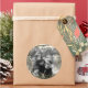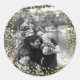 Autocollant rond de confetti d'or avec votre photo personnalisée. Ajoutez simplement votre propre photo et ajustez le texte. Joyeux Noël et Joyeuses fêtes ! Photographie © Storytree Studios, Stanford, CA