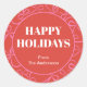Make your gifts and envelopes stand out with this bold and festive round holiday sticker, featuring a bright red background, whimsical pink bow border, and “Happy Holidays” in crisp white typography. Below, your personalized family name adds a warm, custom touch. All texts are customizable.