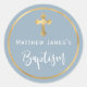 Sticker Rond Modern Light Dusty Blue Gold Cross Boy Baptism