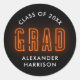 Autocollants modernes de graduation avec "Grad" en néon orange avec un arrière - plan noir. Personnalisez les autocollants de graduation du néon en ajoutant le nom et l'année de graduation du diplômé. Les autocollants de graduation personnalisés sont parfaits pour sceller les enveloppes de graduation et les sacs de faveur! Conçu pour se coordonner avec notre collection Moderne de Graduation Neon.