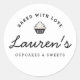 Sticker Rond Modern Retro Baked with Love Cupcakes