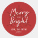 Sticker Rond Modern Script Merry & Bright Snowflakes Christmas
