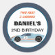 Sticker Rond Modern Two Fast Race Car Boy 2e anniversaire