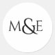A modern wedding monogram envelope seal designed for couples who want a refined finishing touch for their invitation mailings. This minimalist design features the couple’s first name initials joined by an elegant ampersand, set in clean black serif typography on a matte round format. The balanced layout adds a polished detail to wedding envelopes while remaining timeless and versatile. Personalize with your initials to create a cohesive look that feels intentional