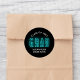 Autocollants modernes de graduation avec "Grad" en cyan néon en lettrage avec un arrière - plan noir. Personnalisez les autocollants de graduation du néon en ajoutant le nom et l'année de graduation du diplômé. Les autocollants de graduation personnalisés sont parfaits pour sceller les enveloppes de graduation et les sacs de faveur! Conçu pour se coordonner avec notre collection Moderne de Graduation Neon.