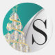 Sticker Rond Monogram Argent, Or et Turquoise Joyeux Noël